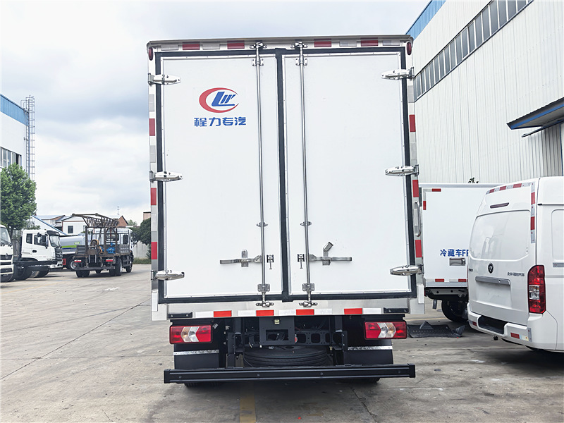 廂體配置:采用我公司液壓吸附一體成型生產線制造,保溫性能達到國家A級標準,廂體內外面料采用最新款納米玻璃鋼(不吸光、隔熱性好、硬度強、抗氧化),廂體厚度為8cm,內襯骨架為防銹處理武鋼優質輕鋼型材,保溫材料為無空隙填充聚氨酯發泡,廂體底部為鋁合金花紋板或選平面納米玻璃鋼,廂體采用鍍鋅不銹鋼包角,加厚型鋁合金包邊,后門框為不銹鋼,加厚型不銹鋼后門合頁及鎖件,廂體內部采用LED照明燈及廂體示寬燈。